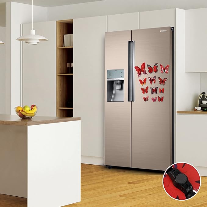 - š¦ Perfect Design: Our 3D Butterfly Wall Decor with magnets. It make butterflies can be sticked to any metal surface, like the refrigerator or shelf easily. Double-sided glue dots design help stick to any where you want, not easy fall or damage the wall. Butterfly stickers can be DIY to walls, window, balloons, flowers, cards, etc.