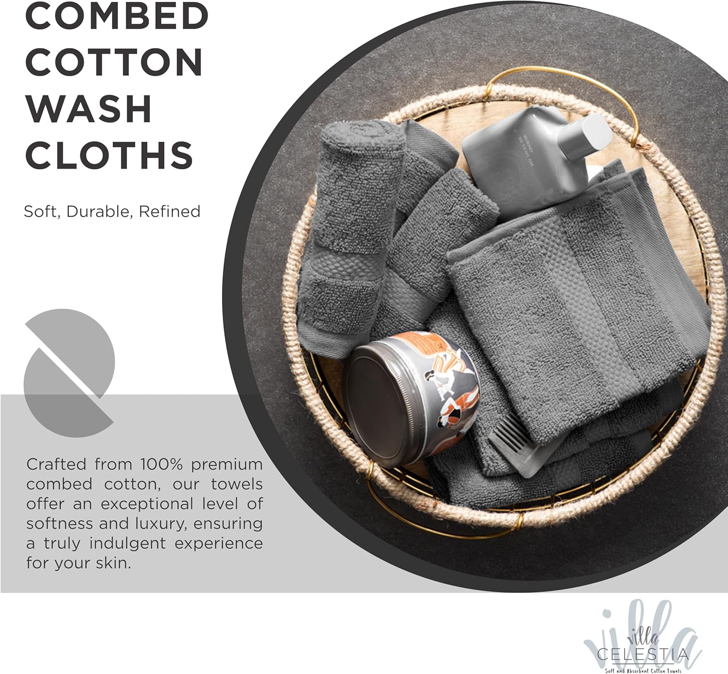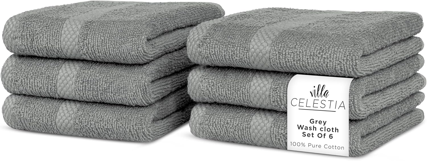 100% Cotton Wash Cloth for face & Body Set of 6, (12 x 12 inches) Sustainable, Soft, Highly Absorbent, Combed Cotton Wash Cloths Pack of 6 for Hotels, Spa, Bathroom, Dorm, Grey
