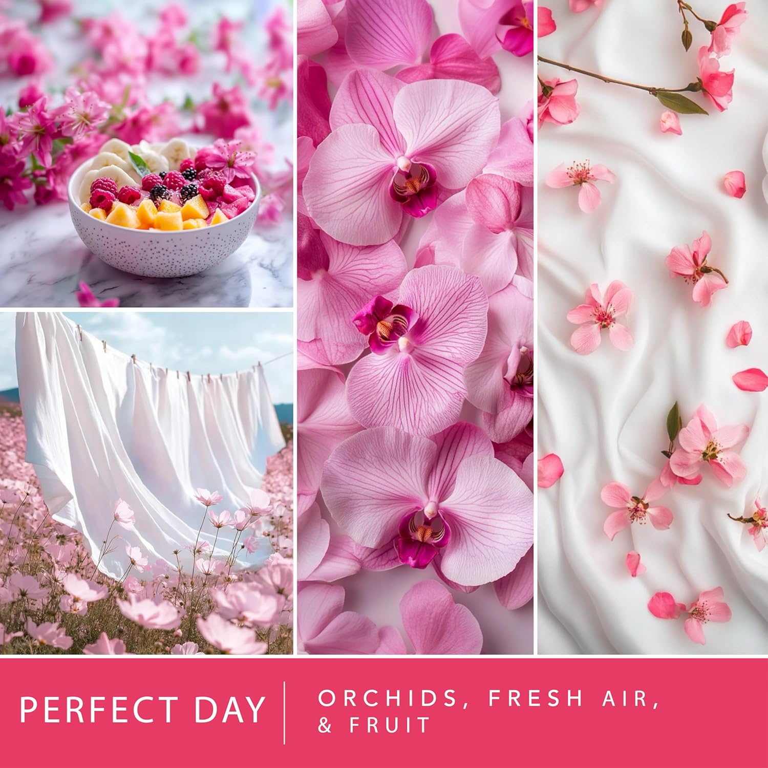 - ORCHIDS, FRESH AIR, & FRESH FRUIT - Awaken your senses with the joyful energy of a crisp morning breeze. Dew-kissed orchard fruits burst with juicy sweetness, mingling with sunlit orchids and sparkling fresh air for an uplifting, radiant escape.