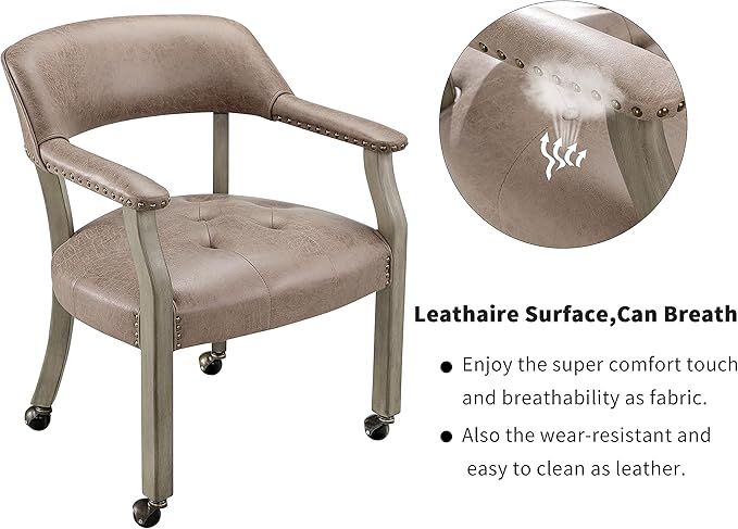 MODERION Modern Brown Solid Wood Boss Caption's Dining Chairs with Wheels and Arms, Office Desk Chairs, Classic Swivel Accent Chairs, 31.5H for Living Room