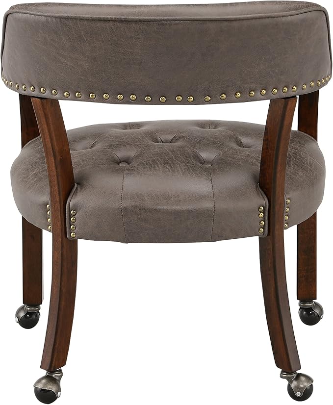 MODERION Modern Brown Solid Wood Boss Caption's Dining Chairs, Office Desk Chairs with Wheels, Arms, and High Back, 31.5H for Living Room Retro SY1533DK