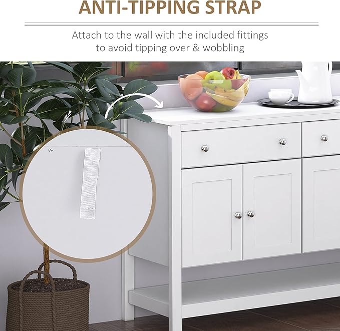 HOMCOM 47" Coffee Bar Cabinet, Sideboard Buffet, Accent Kitchen Cabinet with Adjustable Shelves and Drawers for Living Room, White