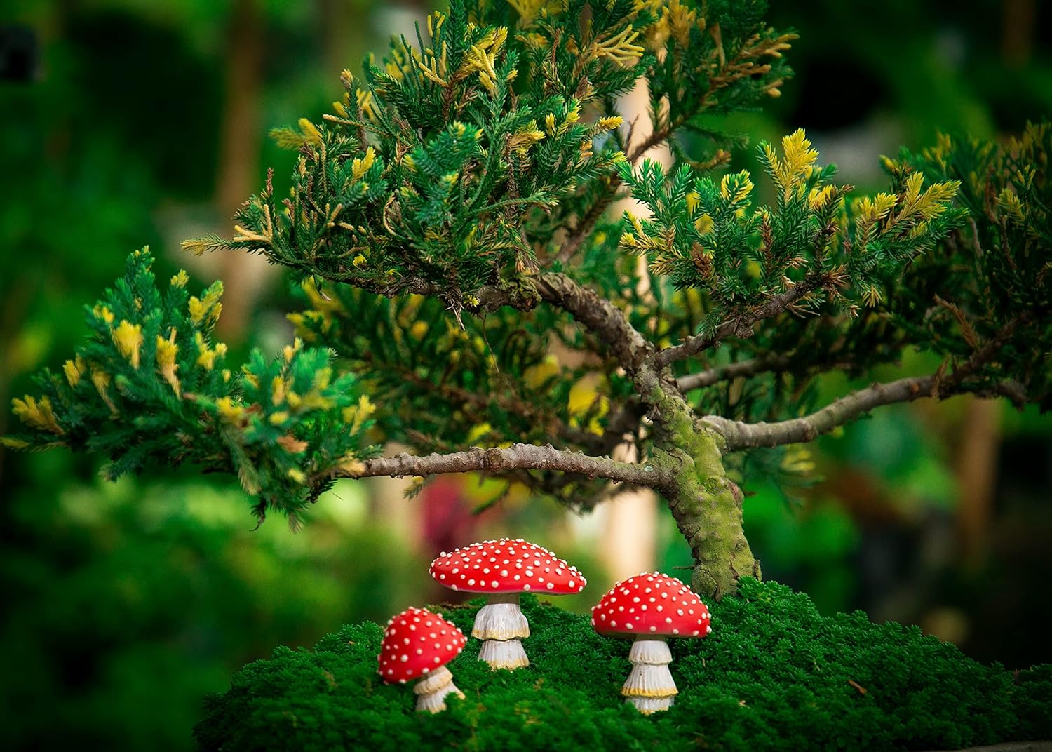 - So many yard decor ideas: You can create a fantastic micro landscape decor by complementing the mushroom statue it with other supplies such as miniature figurines, bonsai decor, mini pots and planters, bird baths, miniature furniture, gnome figures, plants, sculptures, fairy houses and other fairy garden accessories. Children should use under adult supervision.