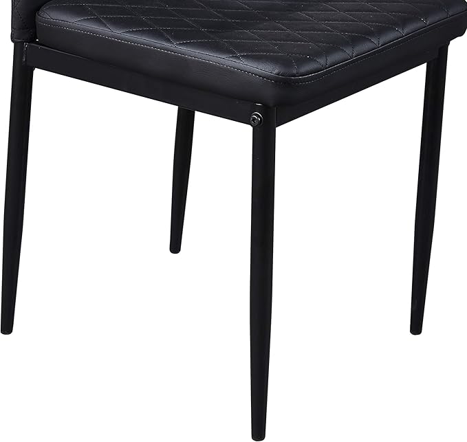 JT Modern Minimalist Dining Chair Fireproof Leather Sprayed Metal Pipe Diamond Grid Pattern Restaurant Home Conference Chair Set of 4 Or 6 (6, Black)