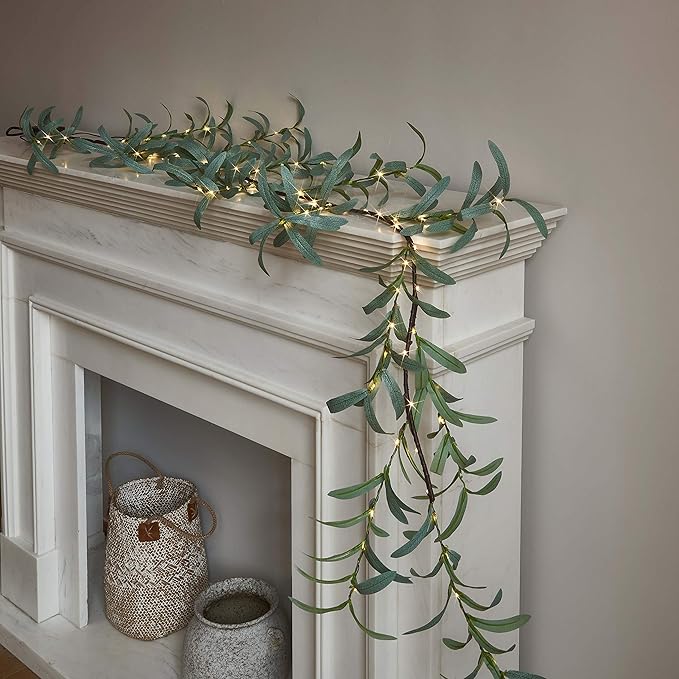 - 【Flexible Branches】: Grey green olive leaves add a fullness for the christmas garland. Flexible but sturdy branches ensure to shape at will. Circle the garland lights and use as a lighted wreath