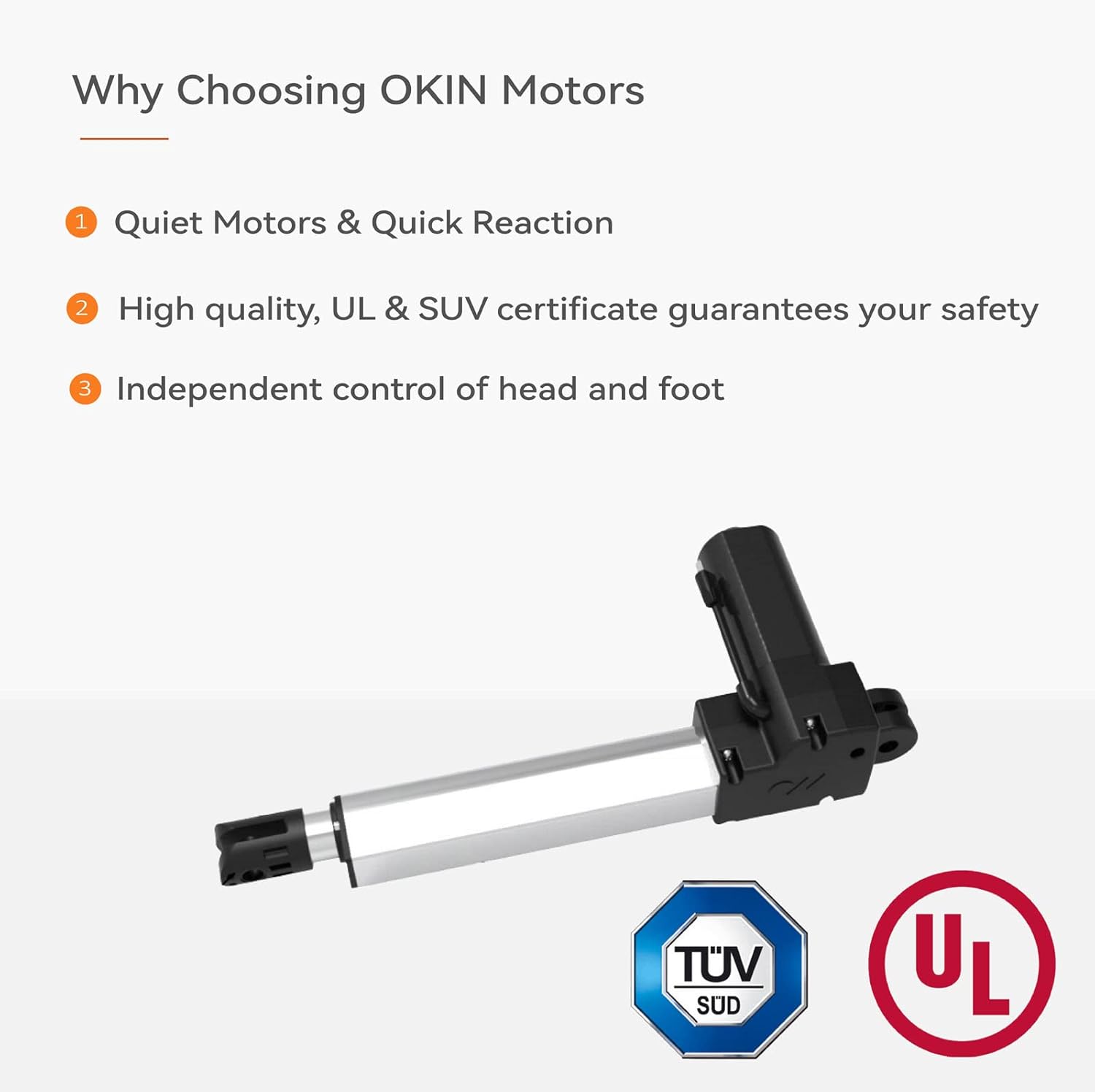 - 👨👩👦MASSAGE WITH OKIN MOTORS - All ESHINE adjustable bed frame use the German engineered OKIN motor system, including massage and foot and head Incline. Full body massage with 3 intensity levels, 3 modes including wave, pulse and full body vibration with a 10 to 30-minute timer option.