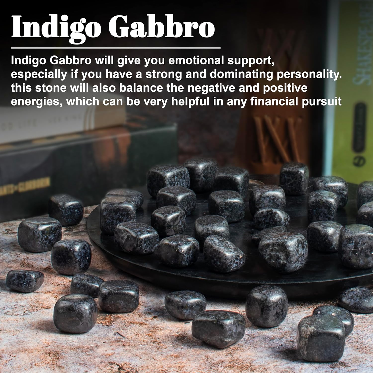 - Tumbled stones : These lovely Indigo gabbro tumble stones are handcrafted in India. The set contains a bunch of 1 LB tumbled stones with a pouch, a crystal guide and a Thank you card. Perfect for crafts, home decor, lapidary, cabbing, and cutting.