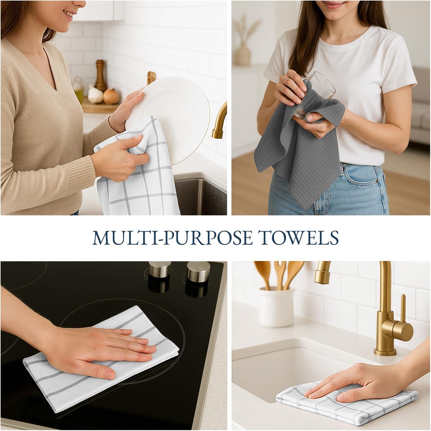 LANE LINEN Cotton Kitchen Towels and Dish Cloths Set, 6-Pack – Absorbent, Quick-Drying Dish Towel, 18" x 28", Soft, Premium Hand and Tea Towels - Grey