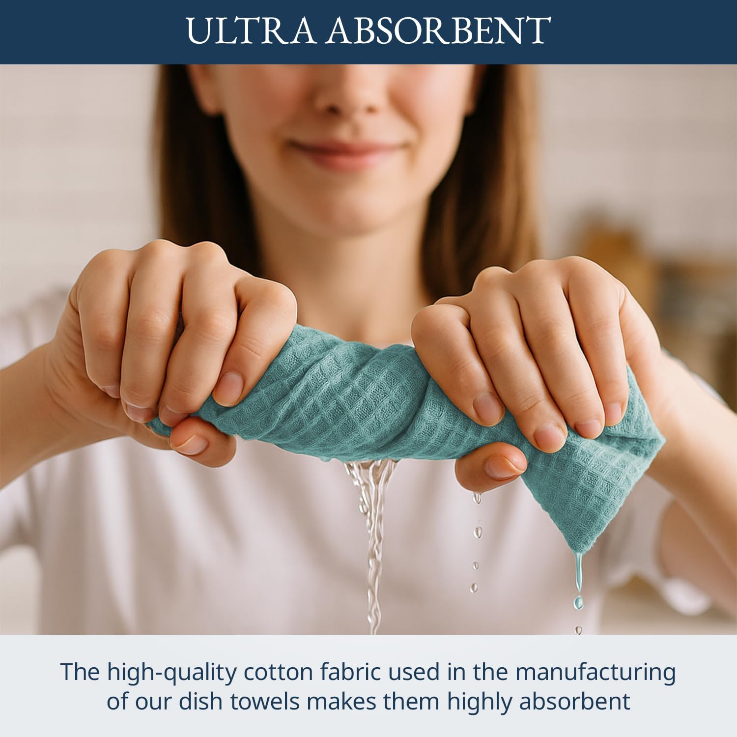 LANE LINEN Kitchen Towels and Dishcloths Set - Pack of 12 Cotton Dish Cloths, 18”x 28”, Soft Hand Towels, Absorbent Tea Towels, Premium Dish Towels, Quick Drying Cleaning Towels - Aqua Towels