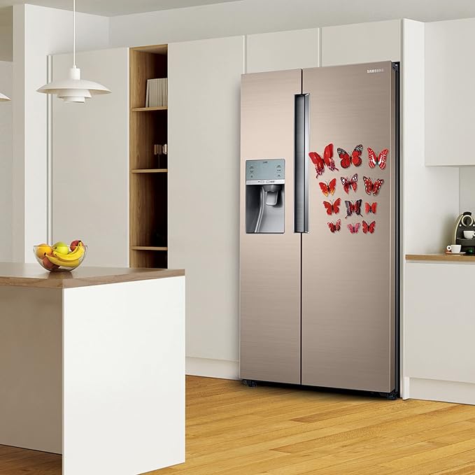 - 🦋[Perfect Design]:Our 3D Butterfly Wall Decor with magnets.It make butterflies can be sticked to any metal surface, like the refrigerator or shelf easily.Double-sided glue dots design help stick to any where you want, not easy fall or damage the wall.