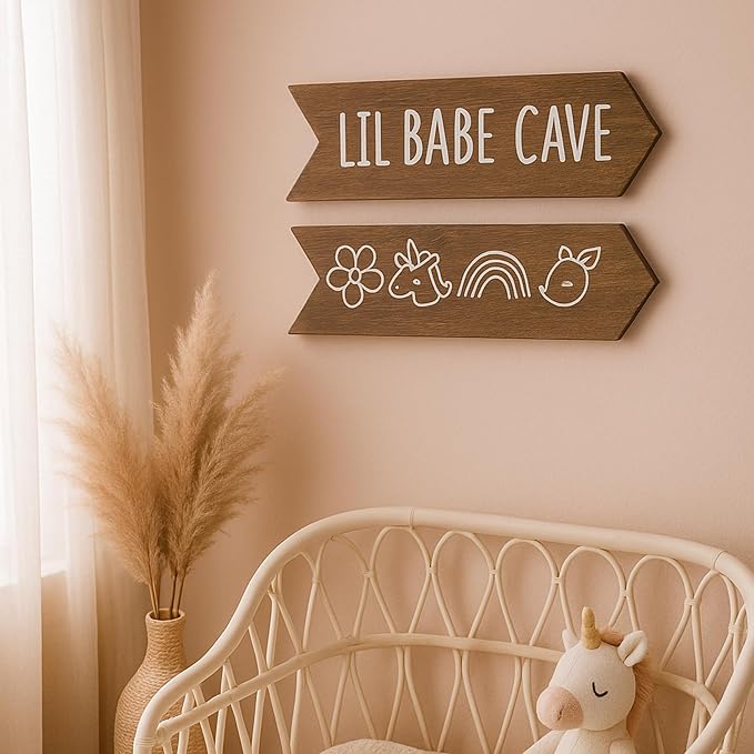 - What's Included? - Our girl cave decor comes with a set of 2 arrow decor for nursery & hooks. Little babe cave sign set has inkjet print of woodland wall art such as unicorn, deer, rainbow and daisy flower. A must have deer antler decor for baby girl nursery decor and girls playroom decor or baby girl wall decor for nursery.