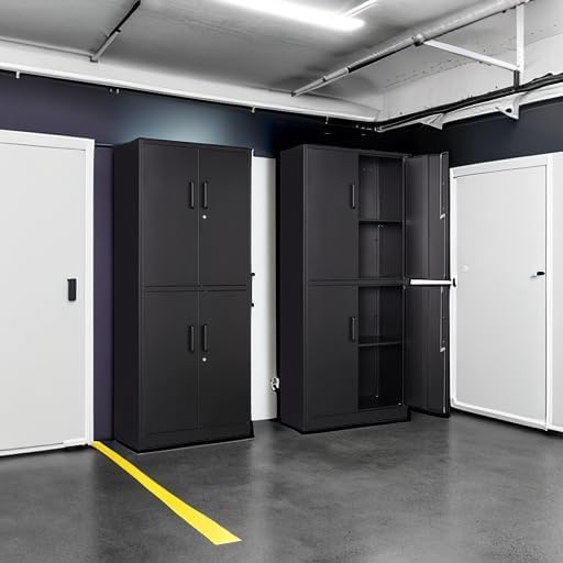 Yizosh Metal Storage Locking Cabinet with 4 Doors and 2 Adjustable Shelves,71" Lockable Garage Tall Steel Cabinet,for Home Office,Living Room,Pantry,Gym,Commercial Storage (Black)