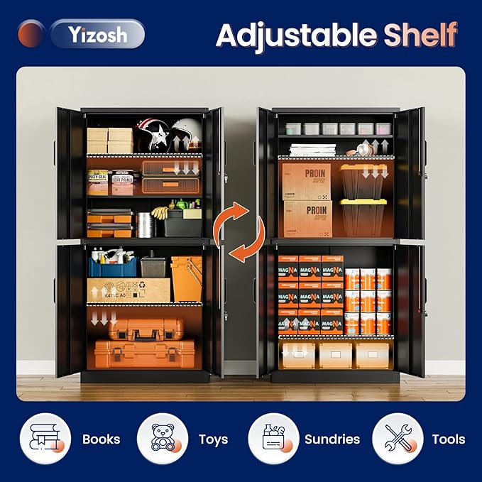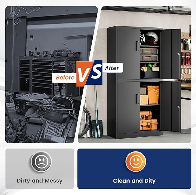 - 『Practical Design』:Our tall metal cabinet equipped with lock and 2 adjustable shelves to provide adaptability and convenience. High-grade lock picking to secure valuables, two keys are included. Regardless of what your storage needs are, you have the ability to create a unique storage space to suit them.