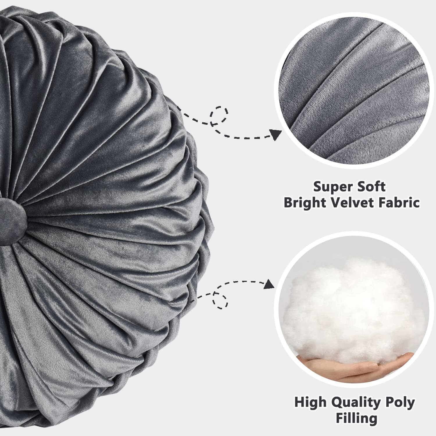 - EXQUISTIE HANDCRAFTED PLEATED DESIGN: This decorative round pillow with unique pumpkin shape is soft to the touch and has extra style with itβs pleated detailing. The intricately pleated design is sewed by hand, not by machine, which is more delicate and high-end. The elegant button in the middle ties together the complete look.