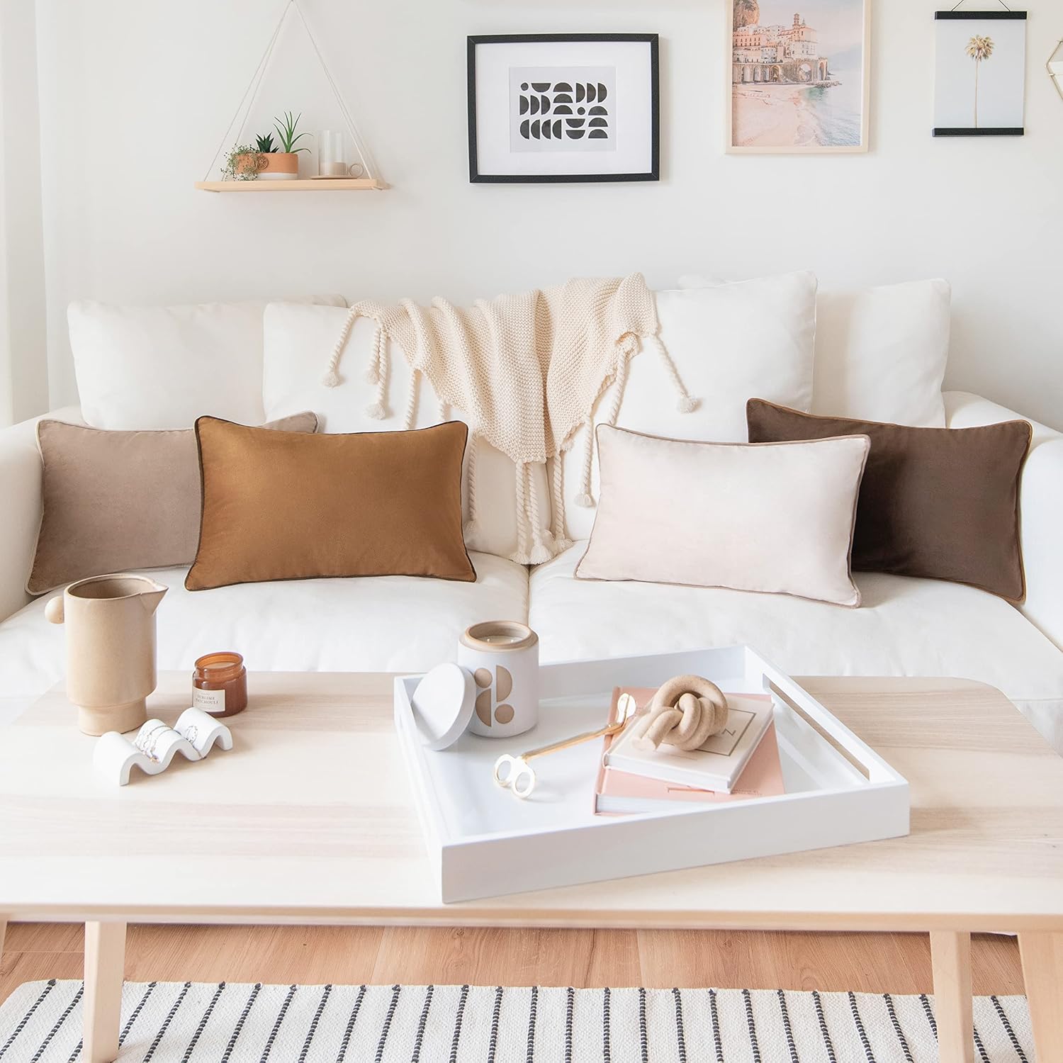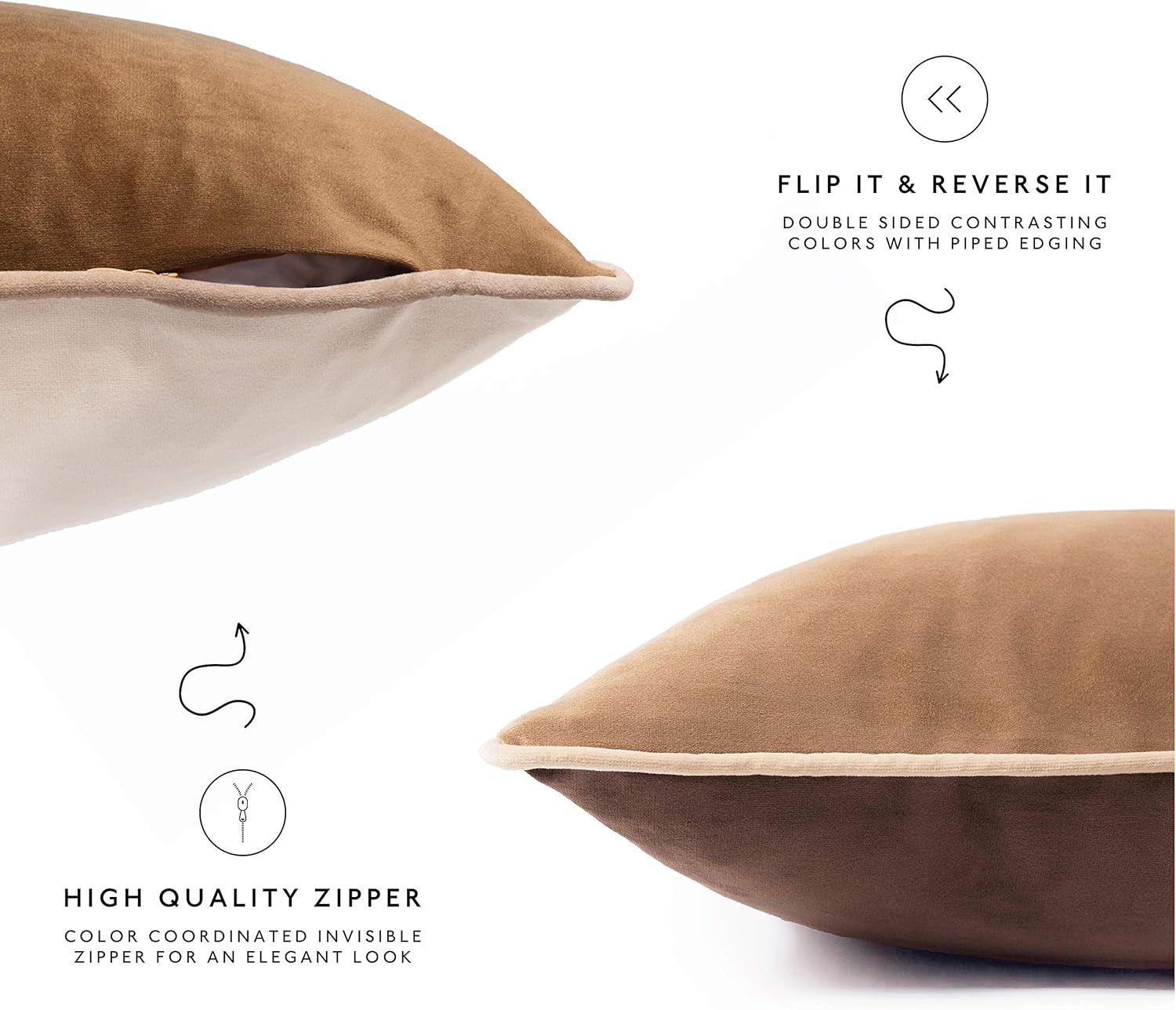 MONDAY MOOSE Decorative Throw Pillow Covers Cushion Cases, Set of 4 Soft Velvet Modern Double-Sided Designs, Mix and Match for Home Decor, Pillow Inserts Not Included (12x20 inch, Brown/Beige)