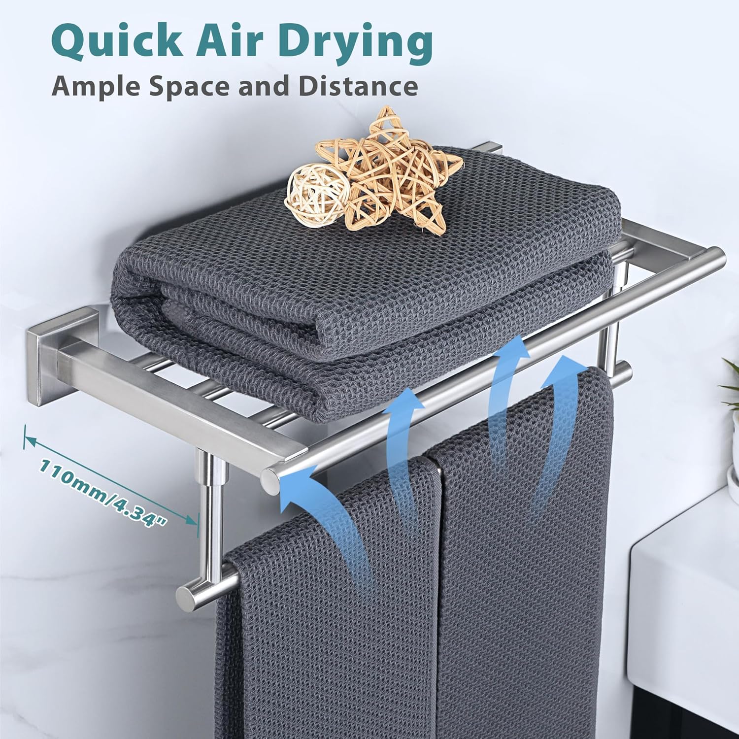 Alise 16 Inch Towel Racks for Bathroom, Towel Rack Wall Mounted with Tower Bars, SUS 304 Stainless Steel Bathroom Shelf, Heavy Duty Hand Towel Holder (Brushed Nickel)