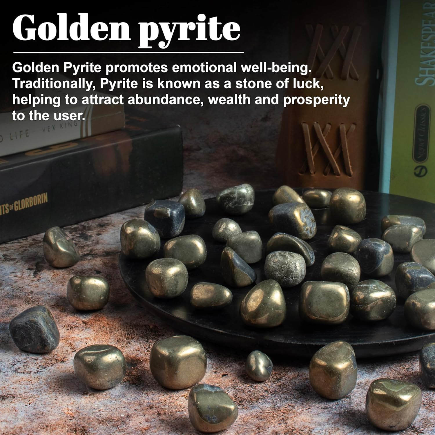 Crocon 1LB Golden Pyrite Tumbled Stones and Crystals Bulk Natural Crystal Kit for Reiki Healing Crystal Polished, Tumble Stones, Chakra Balancing, Good Luck, Reiki Gift, Home Decor Size : 20-25 mm
