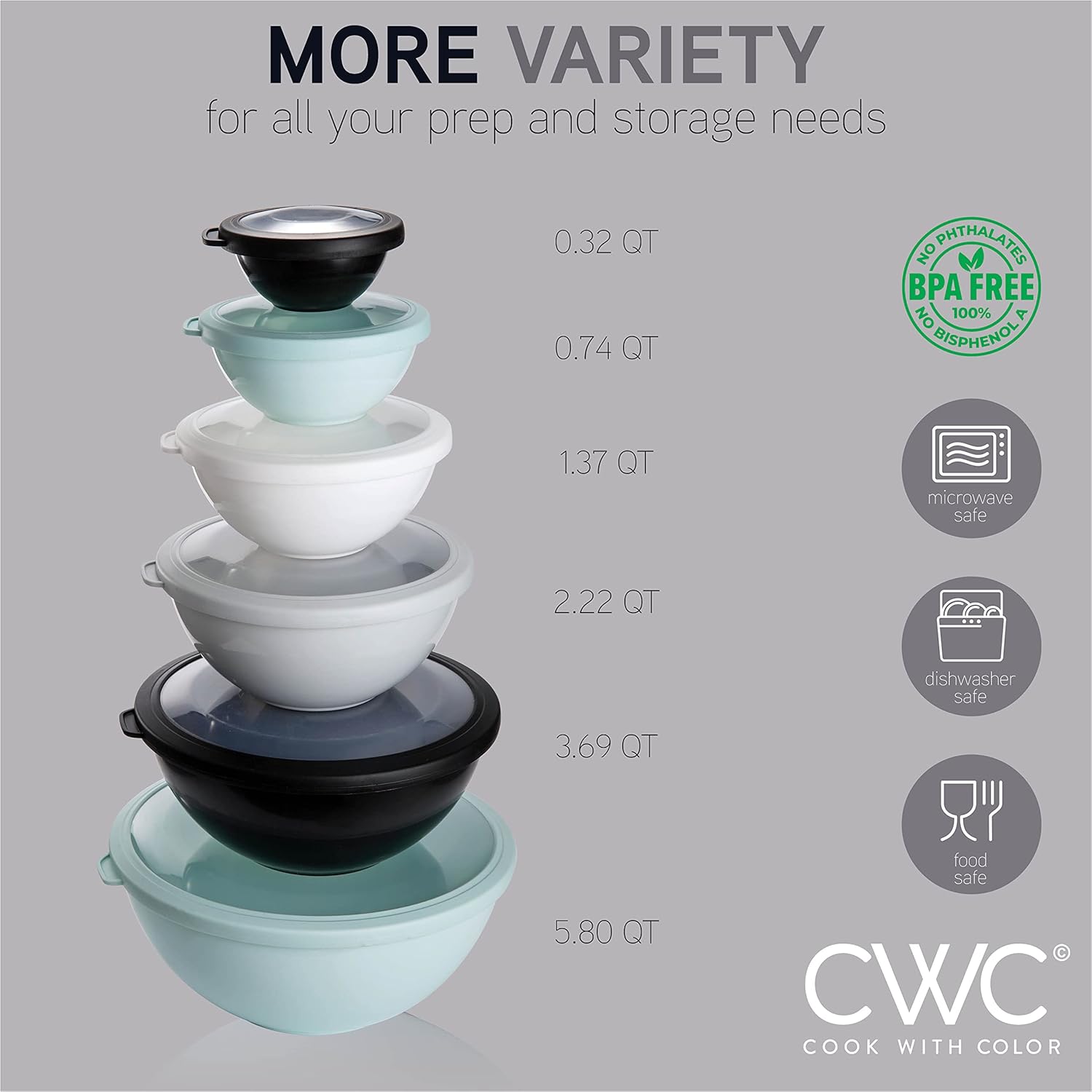 COOK WITH COLOR Mixing Bowls with TPR Lids - 12 Piece Plastic Nesting Bowls Set includes 6 Prep Bowls and 6 Lids, Microwave Safe Mixing Bowl Set (Mint)