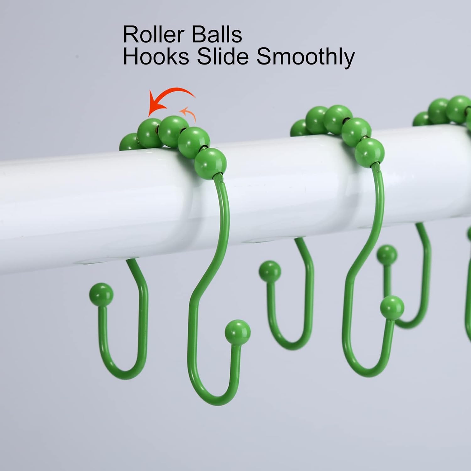 Goowin Shower Curtain Hooks, 12 Pcs Shower Curtain Rings, Stainless Steel Shower Curtain Hooks Rings Rust Proof, Smooth Sliding Anti-Drop Double Shower Hooks for Shower Curtain, Rods (Green)