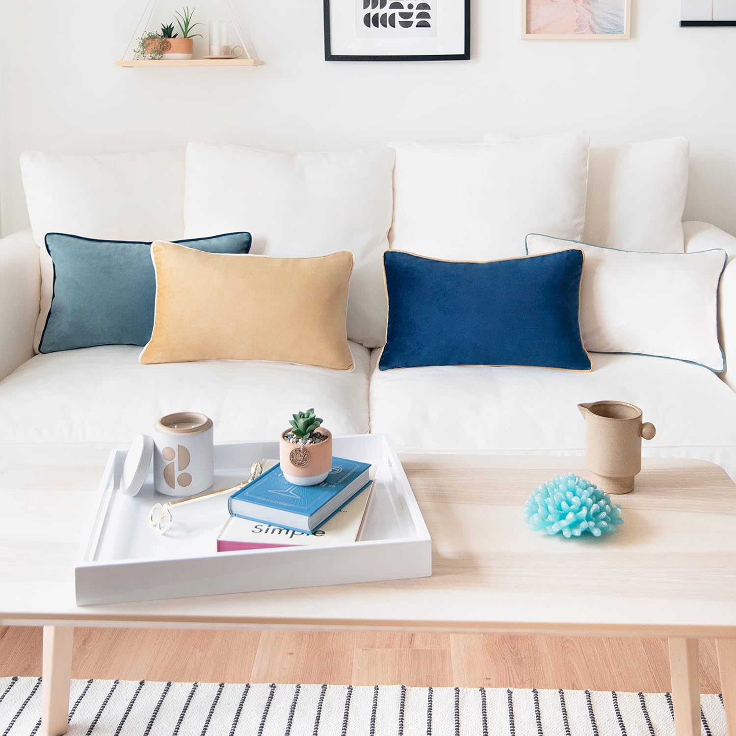 MONDAY MOOSE Decorative Throw Pillow Covers Cushion Cases, Set of 4 Soft Velvet Modern Double-Sided Designs, Mix and Match for Home Decor, Pillow Inserts Not Included (12x20 inch, Blue/Beige)