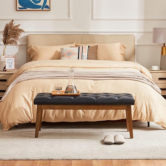 - SOLID WOOD CONSTRUCTION: Our end of bed bench is made of solid hardwood, the leather bench has thick legs, strong bearing capacity, eco-friendly and durable, the dining bench can easily bear 350 lbs of weight, stable weight bearing without shaking, keep your family safe and let you use more assured.
