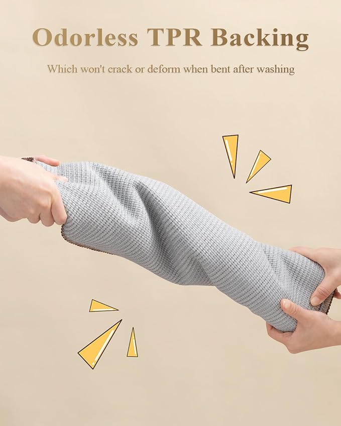 - NON-SLIP BACKING: High quality TPR backing to keep the kitchen mat firmly in place and prevent shifting and skidding.Provide better security for families with children or the elder.Attention: The kitchen rug underlay should be clean,flat,and dry before placing the mat on the floor.Water or dust under mat may cause slippage.