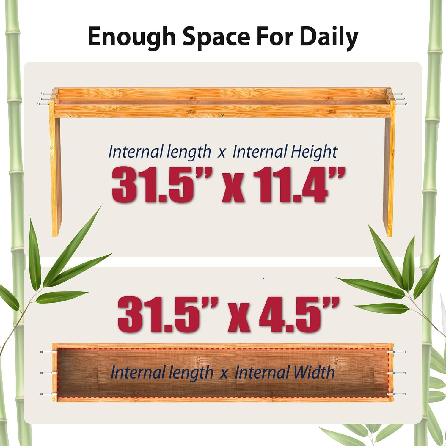 IIIOIIIA Bamboo Over The Stove Spice Shelf for Kitchen Storage, 31.5" Kitchen Spice Rack Organizer Stove Top Shelf with 6 Hooks, 11.4" Height Extra Storage Countertop, Easy to Assemble