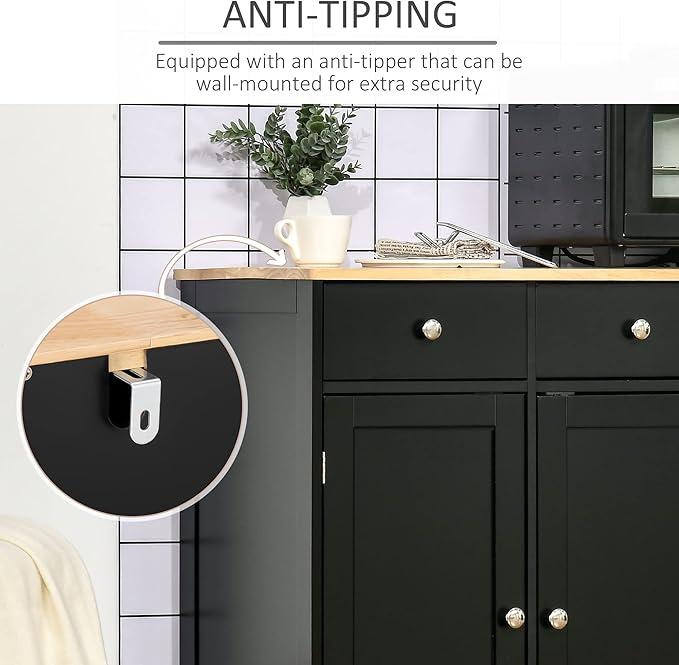 HOMCOM Sideboard with Solid Wood Countertop, Modern Kitchen Storage Cabinet, Coffee Bar Cabinet with 3 Drawers, Doors and Adjustable Shelf, Black