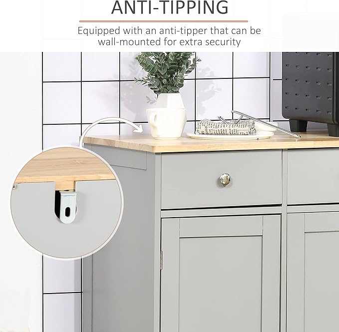 HOMCOM Sideboard with Solid Wood Countertop, Modern Kitchen Storage Cabinet, Coffee Bar Cabinet with 3 Drawers, Doors and Adjustable Shelf, Gray