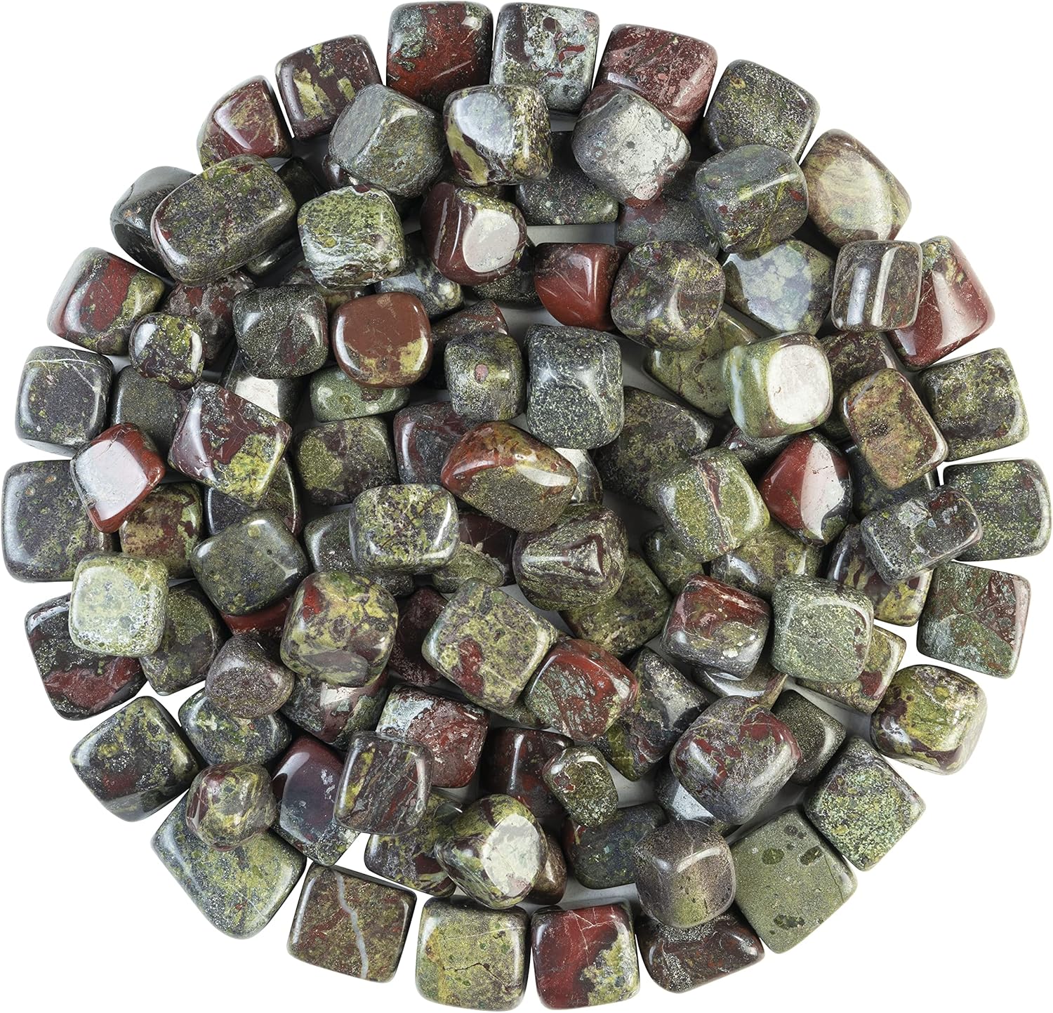 Crocon 1lb Dragon Bloodstone Tumbled Stones and Crystals Bulk, Polished Stones - Rock Collection - vase Filler tumbles Crystals Healing Reiki - Gemstone Gifts, Good Luck, Fountain tumbles Size 20 mm
