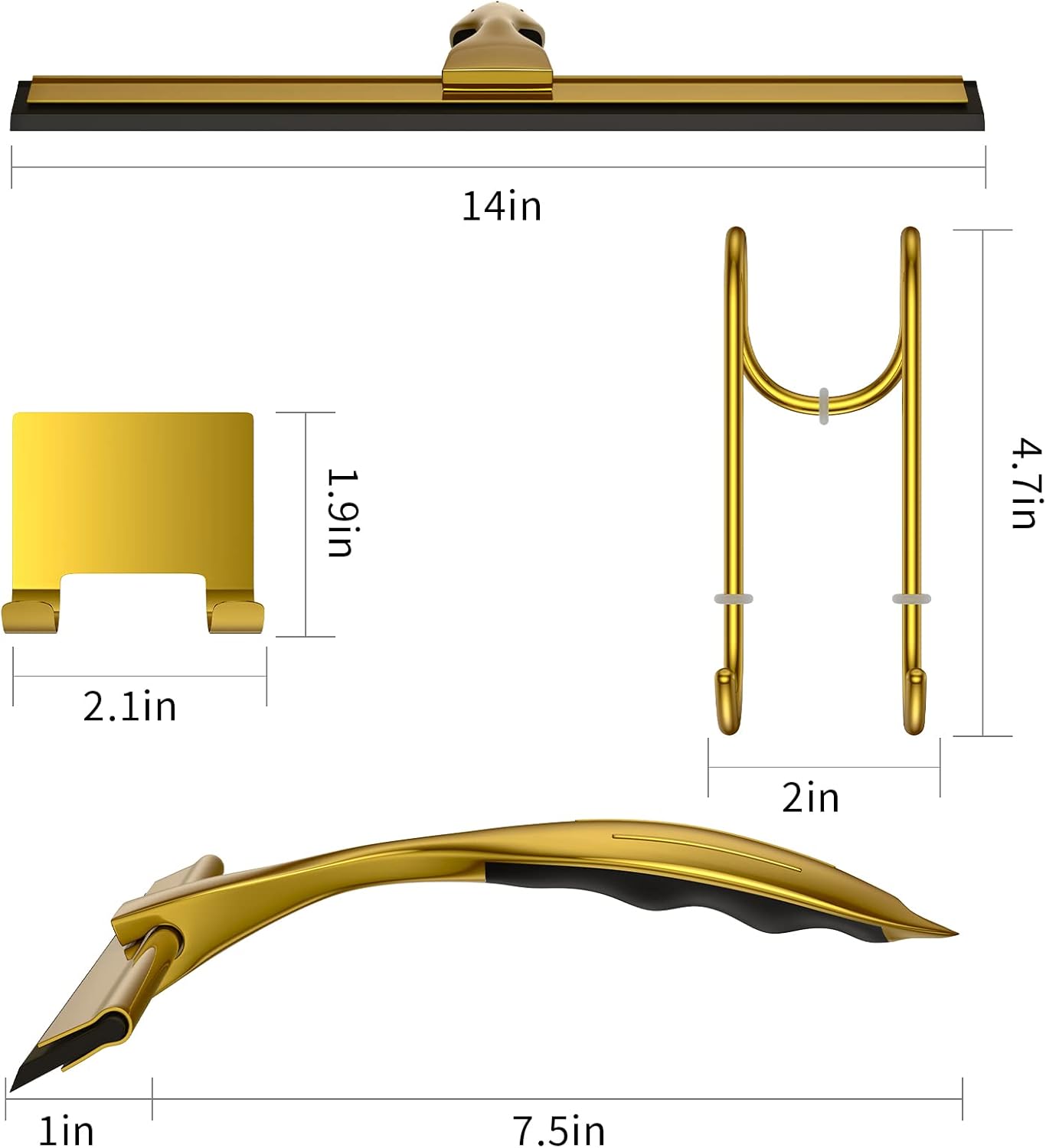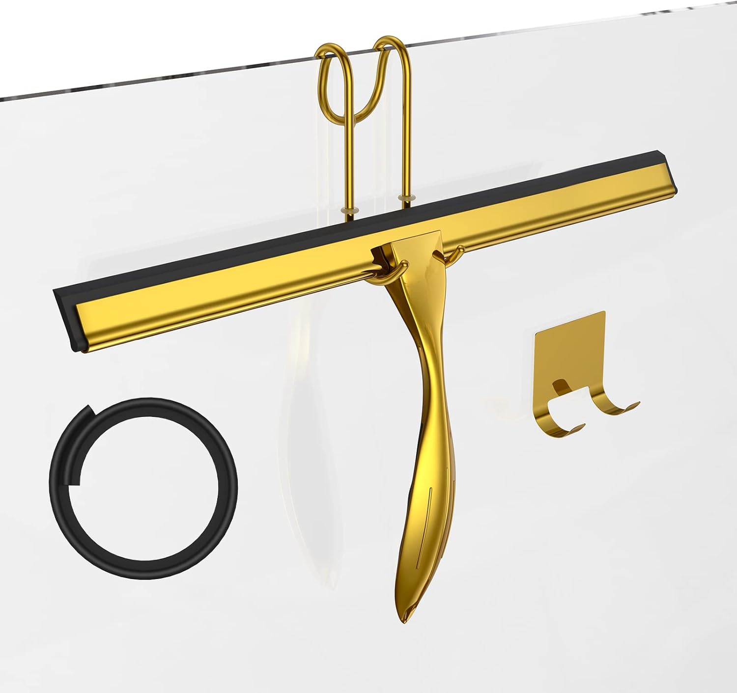 14-Inches Stainless Steel Shower Squeegee Set, Include Shower Door Hook, Adhesive Hook and Spare Silicone Blade, Window Squeegee for Shower Glass Door, Bathroom, Mirror, Window and Car Glass