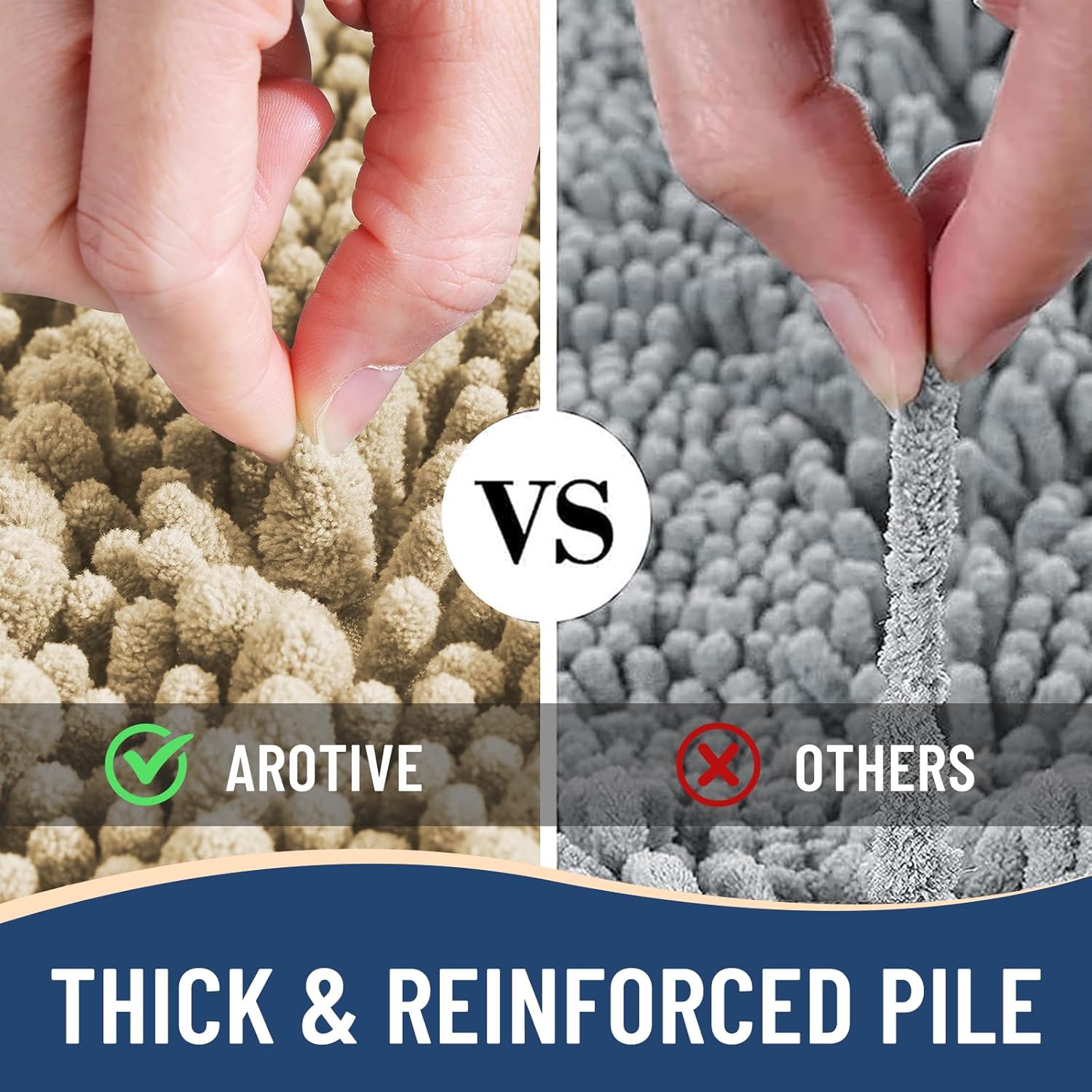 Arotive Luxury Chenille Bathroom Rug Mat, Extra Soft Thick Absorbent Shaggy Bath Rugs, Non-Slip Machine Wash Dry, Plush Bath Mats for Bathroom, Shower and Tub, 47x17, Beige
