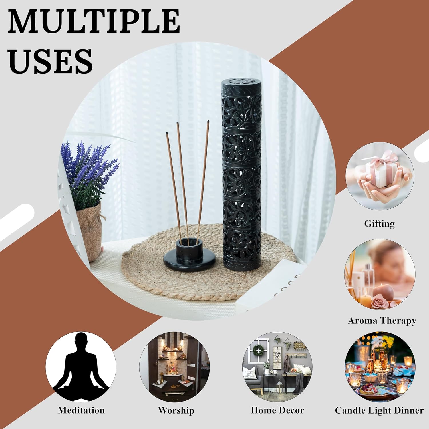 - ⨠FRAGRANCE DECORATIVE TOWER BURNER : This can be used For Home Decor , Mandir Decor , Temple Decor , Corner Decor , Incense Stand & Gift. It is said that the incense tower increases positive energy and drives away negative energy. The pure air is like health food for the brain and the body, resulting in an increased motivation and energy level.