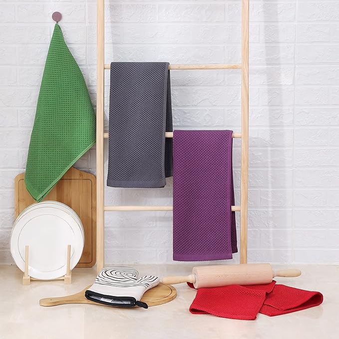 Homaxy 100% Cotton Waffle Weave Kitchen Dish Towels, Ultra Soft Absorbent Quick Drying Cleaning Towel, 13 x 28 Inches, 4-Pack, Purple