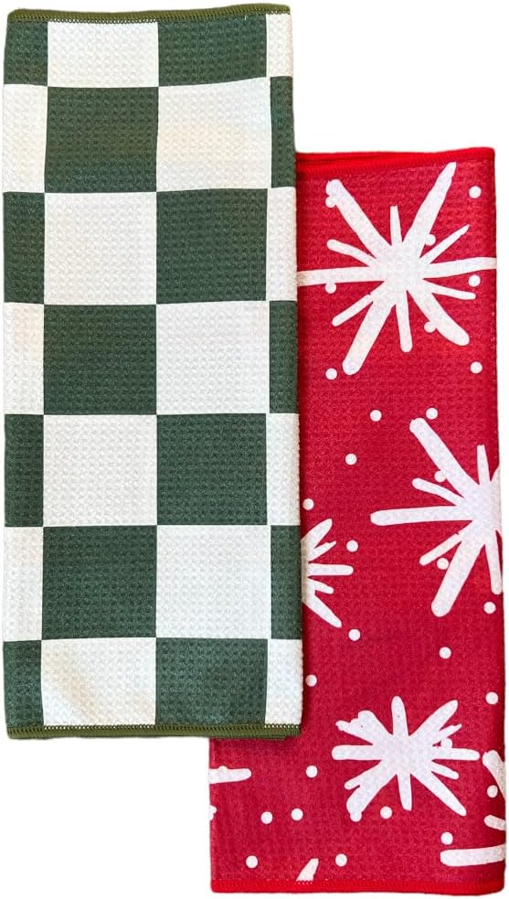 2 Pack Double Sided || Not Your Ordinary Kitchen Towels || Dish Towels || Quick Dry || Waffle Weave Microfiber || Highly Absorbent || Hanging Hook (Christmas Checkered)