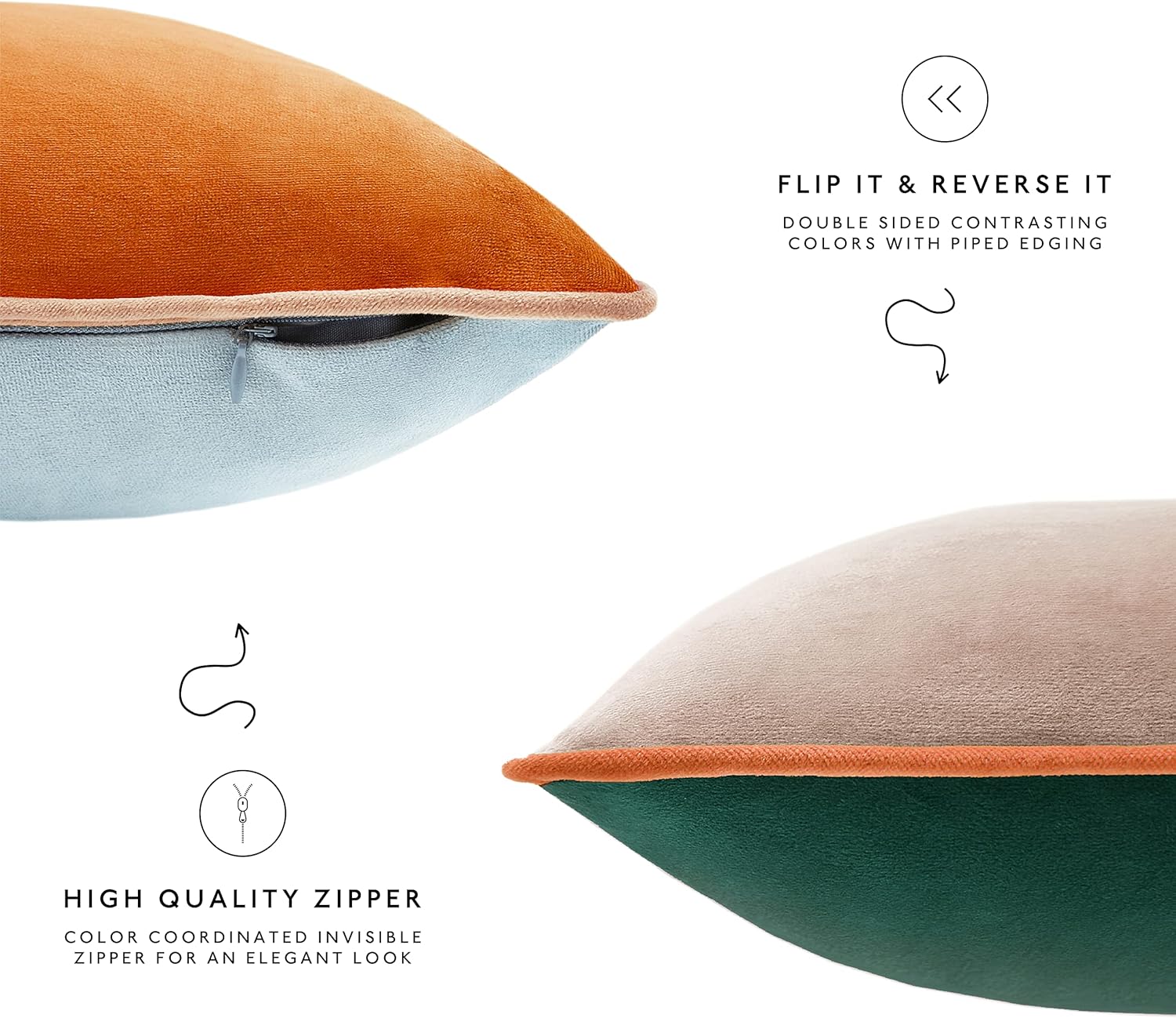 MONDAY MOOSE Decorative Throw Pillow Covers Cushion Cases, Set of 4 Soft Velvet Modern Double-Sided Designs, Mix and Match for Home Decor, Pillow Inserts Not Included (12x20 inch, Orange/Green)