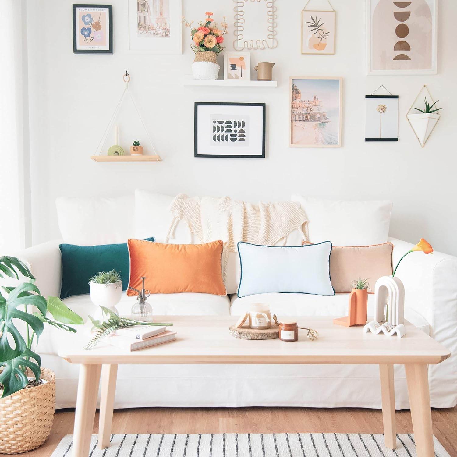 - SET OF 4: Includes 1 beige velvet pillow + 1 green velvet pillow + 1 orange velvet pillow + 1 light blue velvet pillow