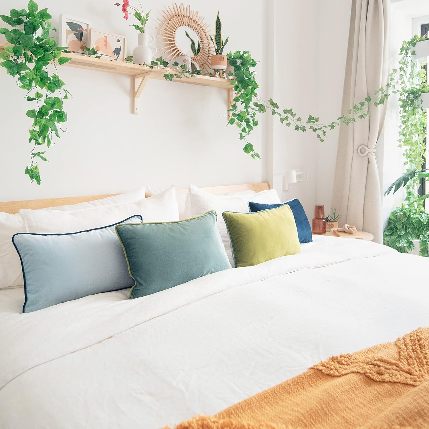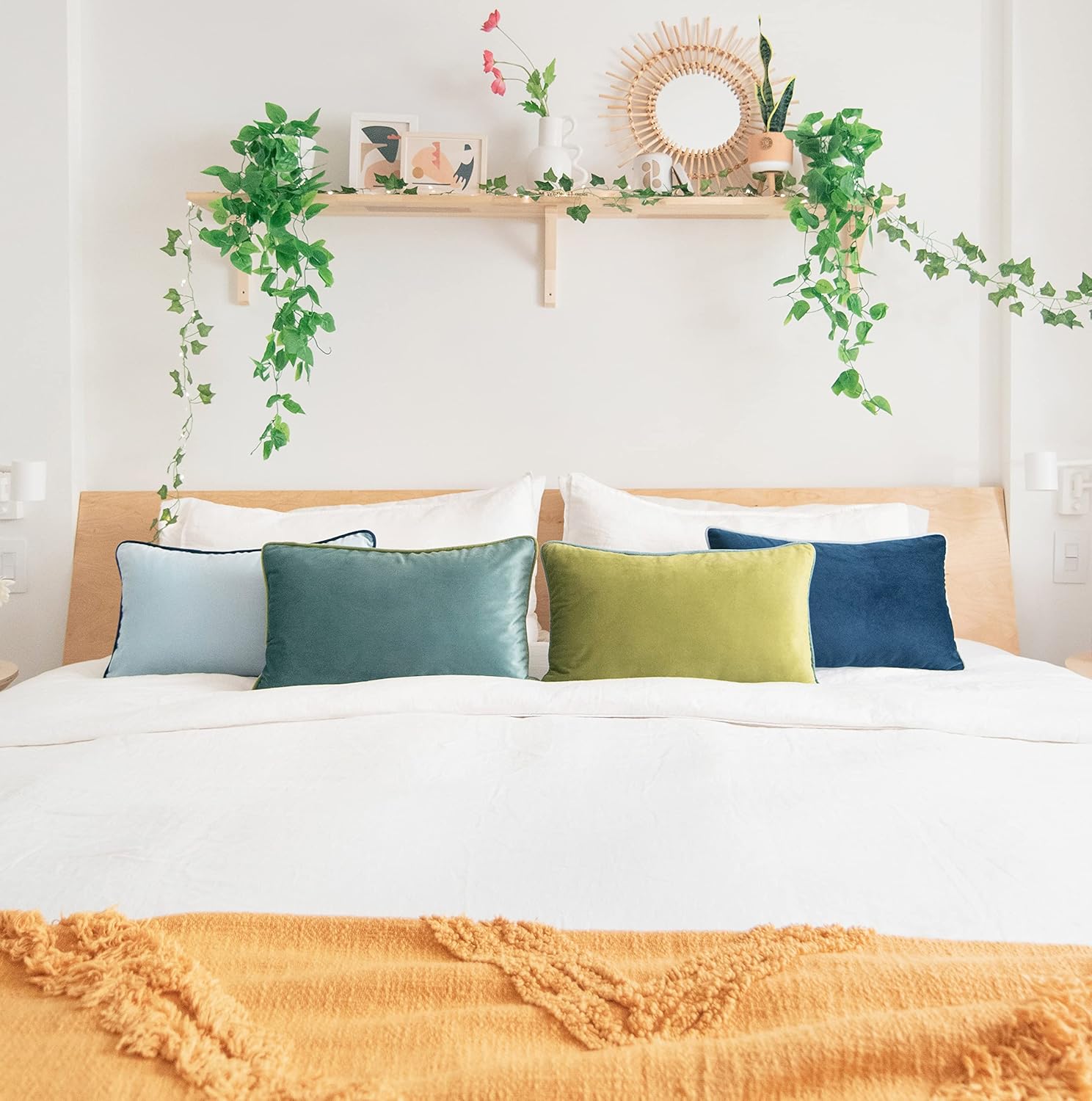 - SET OF 4: Includes 1 olive green velvet pillow + 1 light blue velvet pillow + 1 blue velvet pillow + 1 teal velvet pillow