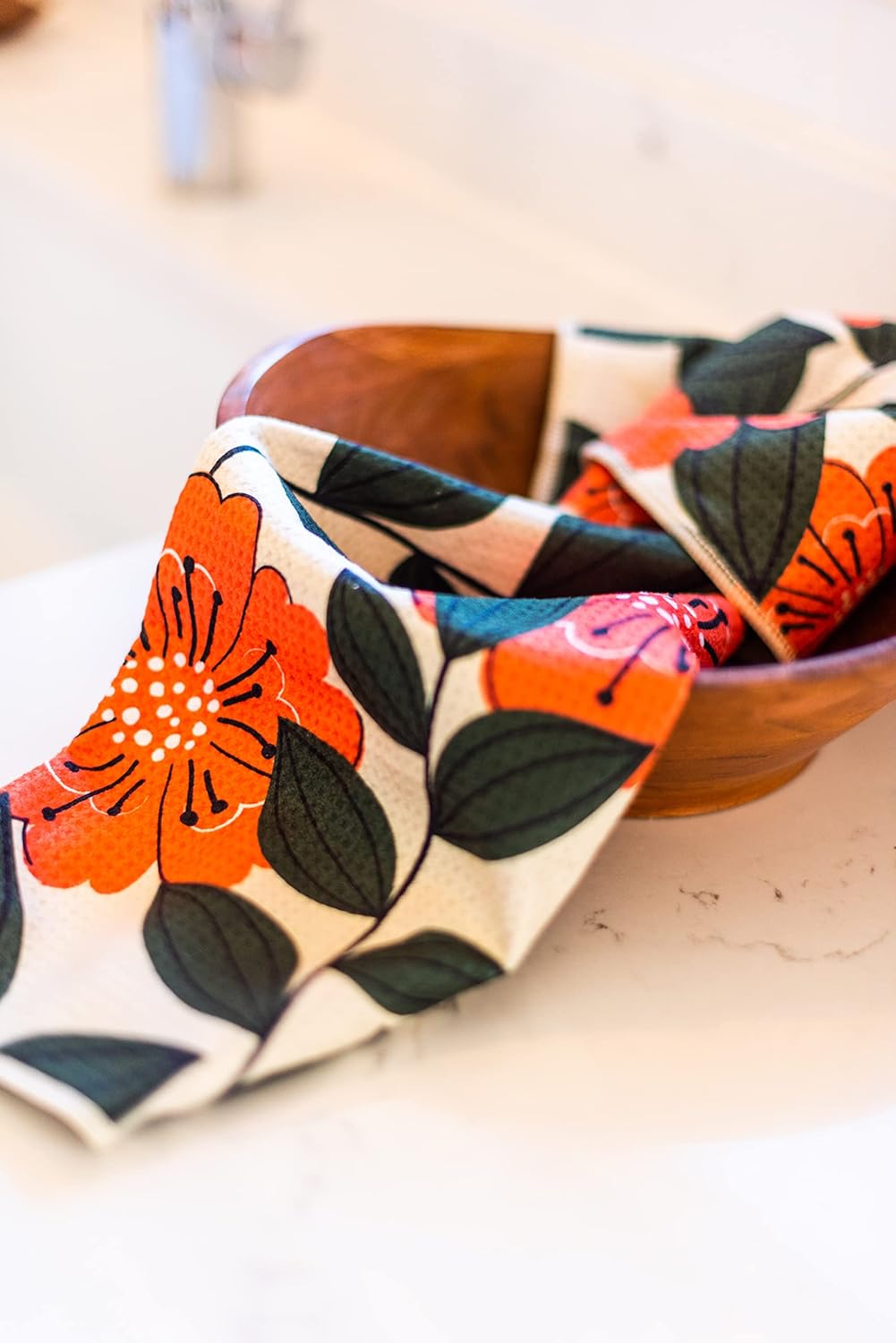 2 Pack Double Sided Kitchen Towels || Dish Towels || Quick Dry || Designer Prints || Highly Absorbent || Hanging Hook (Poppy)