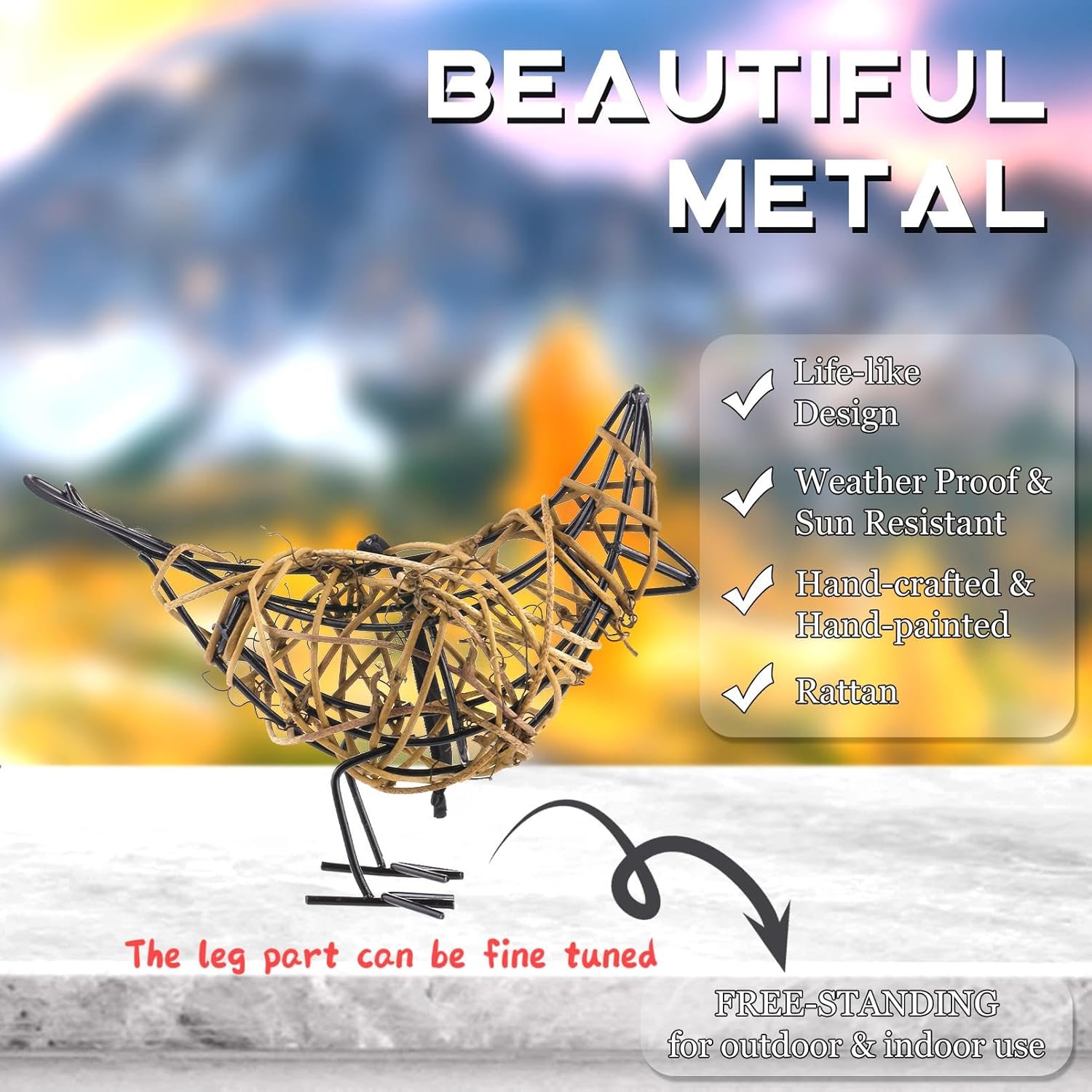- [Naturalistic Pair] Set includes- "Standing bird (alert posture)", "Feeding bird (dynamic motion)“,Create lifelike garden vignettes indoors.