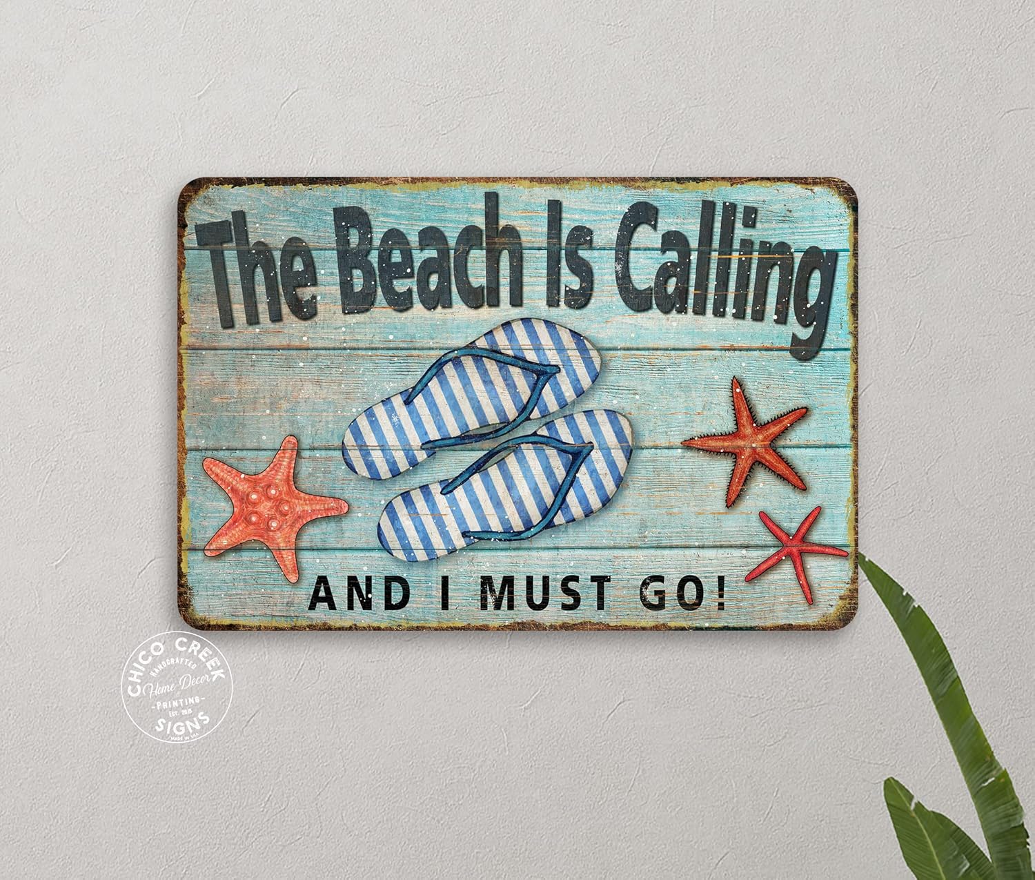 The Beach Is Calling Sign Beach Decor Ocean Decorations Nautical Signs Seashell Home Wall Gifts 8x12 208122001043