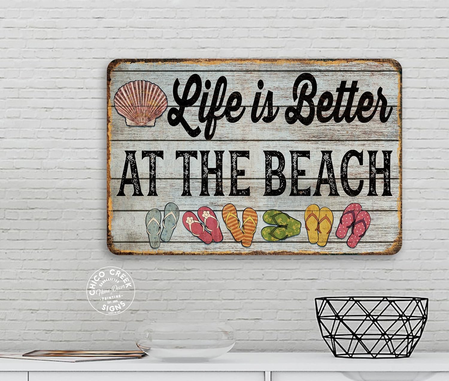 Life Is Better At The Beach Sign Beach Decor Ocean Decorations Nautical Signs Seashell Home Wall Gifts 8x12 108122001047