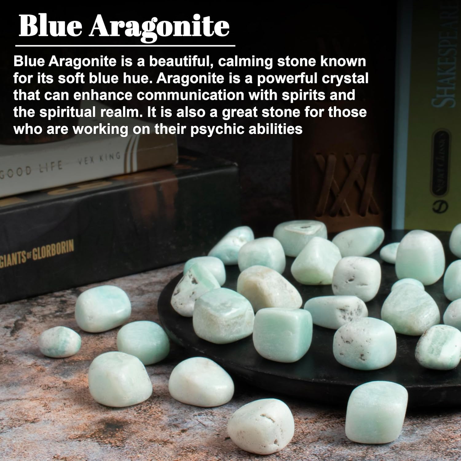 Crocon 1/2LB Blue Aragonite Tumbled Stones and Crystals Bulk Natural Crystal Kit for Reiki Healing Crystal Polished Tumble Chakra Balancing, Good Luck, Reiki Gift, Home Decor Size : 20-25 mm