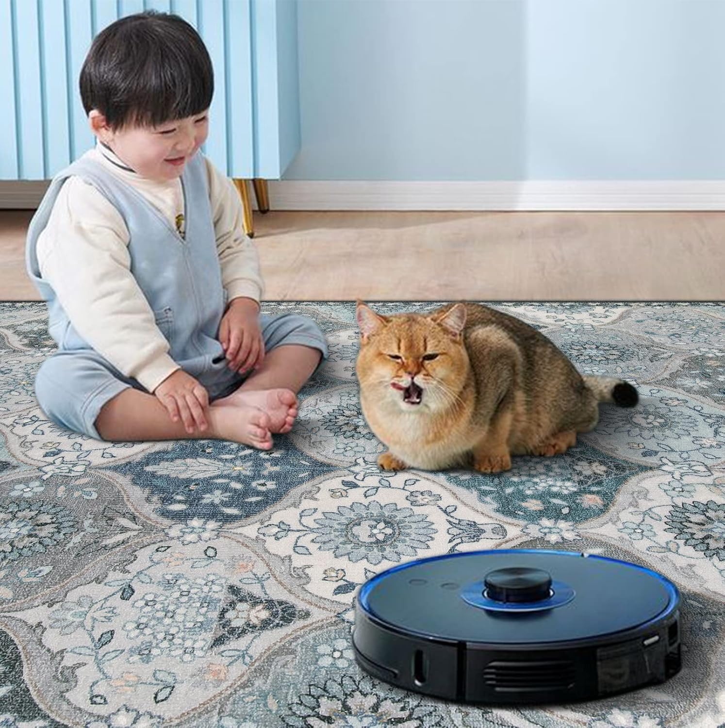 - Ultra-thin and Safe: This ultra-thin Moroccan rug can be easily placed in entryways and under furniture, and won't get stuck on doors and become a tripping hazard. The sweeping robot can move to clean the carpet