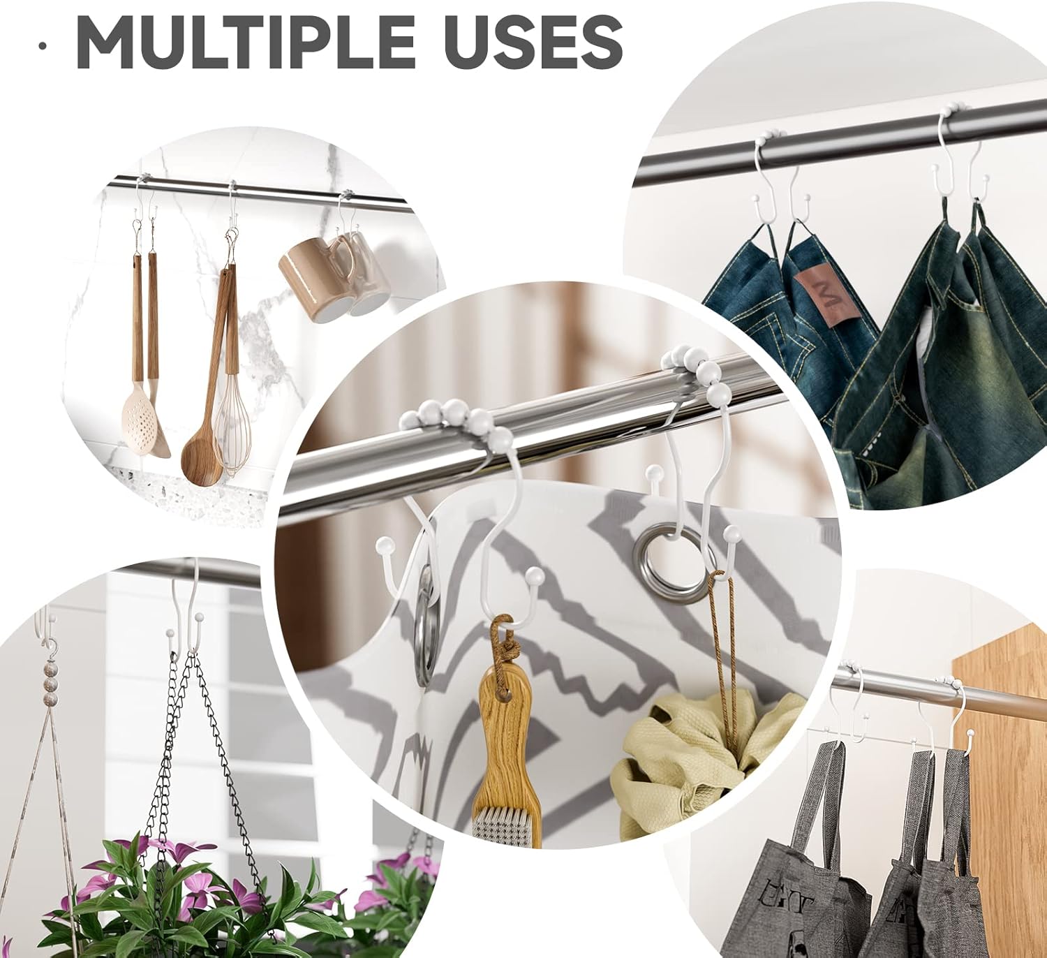 - Multipurpose: In addition to hanging shower curtains, these shower curtain rings white can also support other uses, such as hanging jeans, vests, baseball caps, dual strap purses, kitchen utensils, etc.