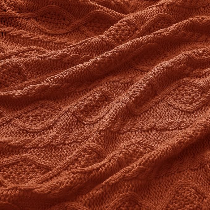 - 🧣Cable Design & Vibrant Colors Decor - Unique crochet stitch method with decorative diamond texture pattern, simple and neat for the perfect finish that won't unravel in the wash. Hot Pink, Cream White, Sage Green, Rust, Dusty Blue, vivid color as a decor piece, over a chair or couch,or keep it in the car or the luggage in case you need it when traveling.