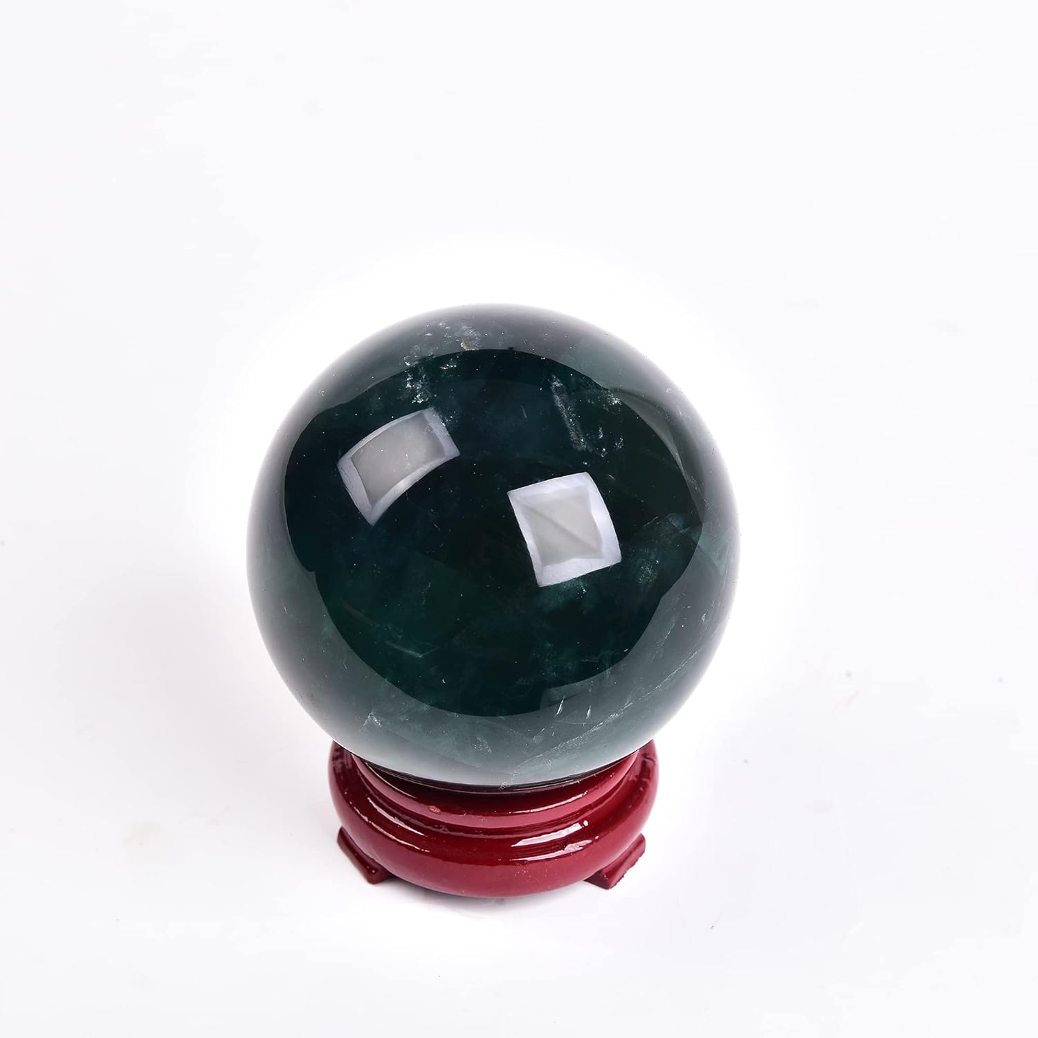 - Natural Crystal Sphere:About 2.7-3.1"(70-80mm).Material:100% Natural green fluorite stone,with a wood stand.hand made and polished,so each is unique and one of a kind,some may come with small chips or imperfections.Any appearances of cracks are one of the natural characteristics of this crystal or mineral and not because of damage