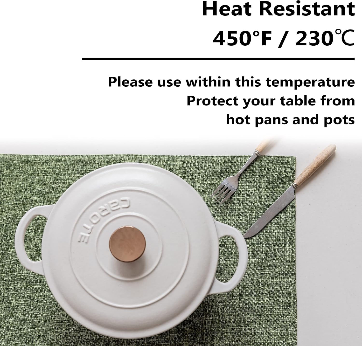 Home Brilliant Linen Cloth Placemats Set of 6 Heat Resistant Dining Table Place Mats Kitchen Washable Dining Mats for Dinner Decor, Green