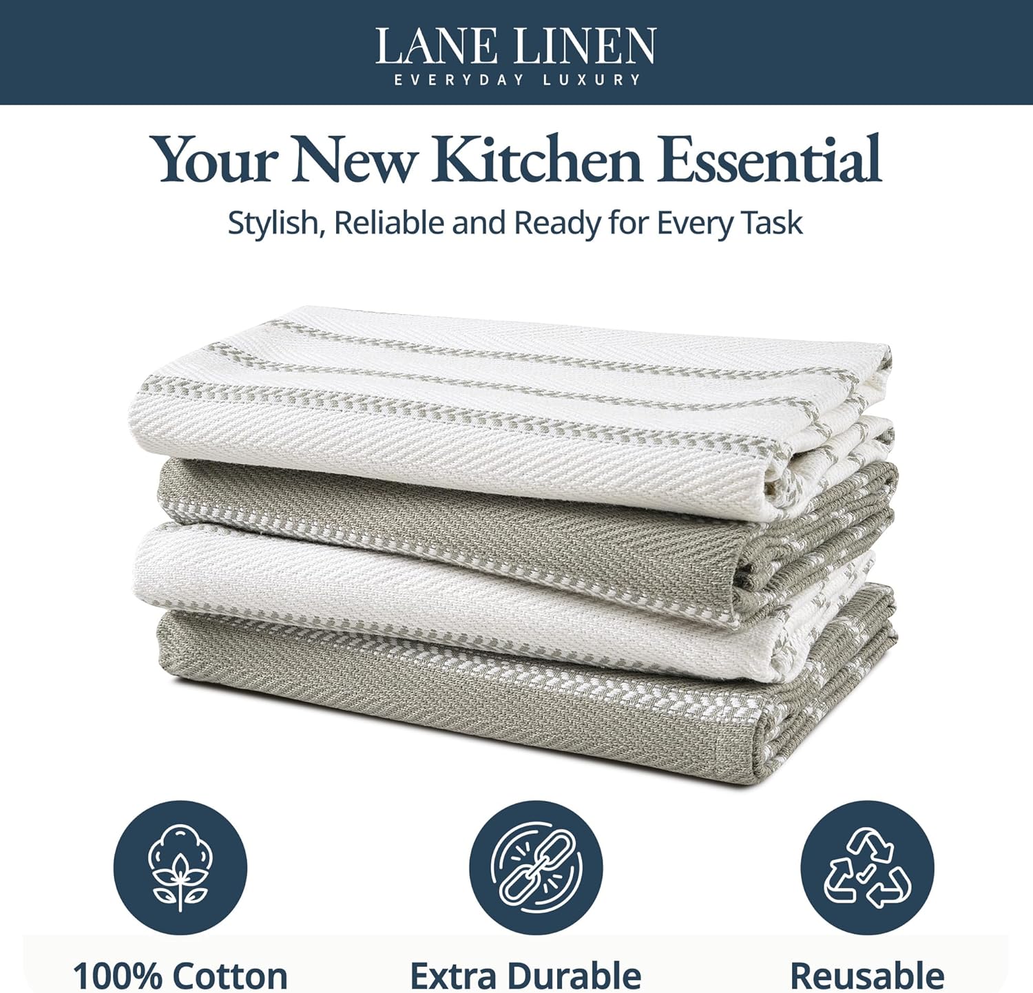 - Value Pack : Lane Linen kitchen towels and dishcloths sets includes 4 Pack Dish Towels For Drying Dishes. Great alternative to paper towels. With a convenient size of 18 x 28" anyone can handle these kitchen linen sets and you will never run out of dish towels again!