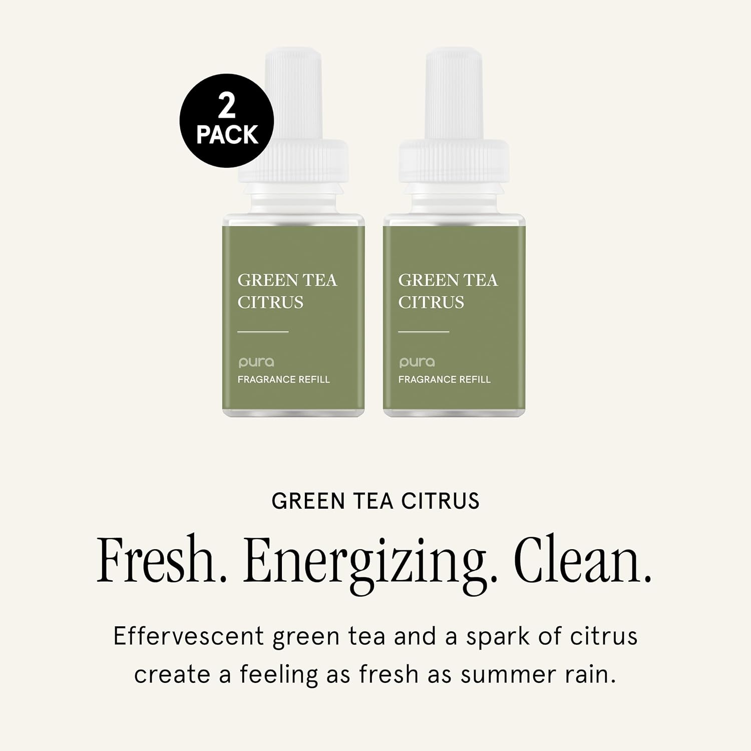 PuraHome Scent Refill - Smart Home Air Diffuser - Up to 120-Hours of Luxury Fragrance per Refill - Home Essential - Clean & Safe Diffuser Fragrance - 2 Pack, Green Tea Citrus